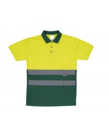 Polo bicolor de alta visibilidad de manga corta de la serie 173, realizado en tejido transpirable. Un bolsillo y cintas reflectantes en el pecho.