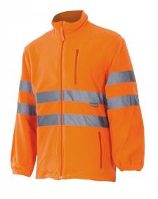 Forro polar unisex de alta visibilidad con cuello alto, cremallera central y tres bolsillos con cremallera. Cintas reflectantes en pecho y mangas.