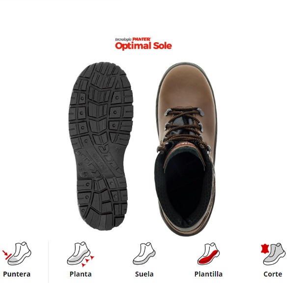 - Puntera plástica anti-impactos (200J) y planta antiperforación de acero (1100N).