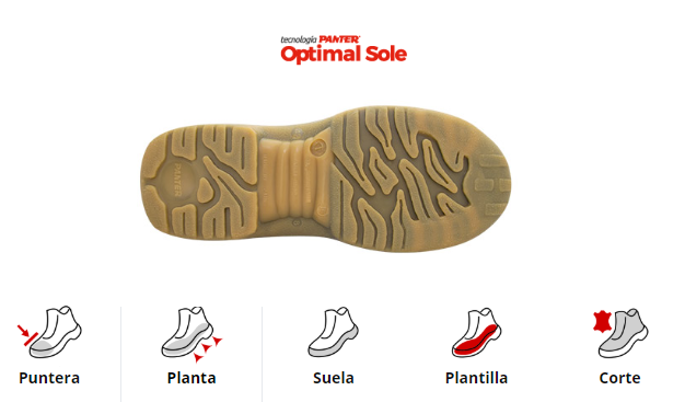 - Suela antitorsión, resistente a aceites e hidrocarburos. Cuenta con refuerzo especial en el puente para realizar trabajos sobre escalera.