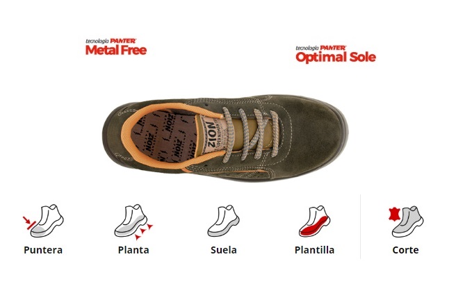 - Puntera plástica anti-impactos y planta textil antiperforación, no metálicas.