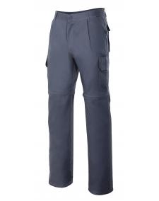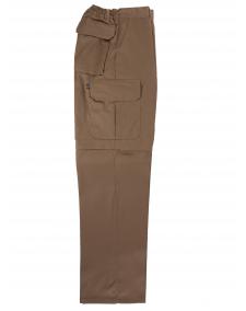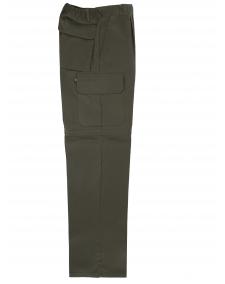 Pantalón desmontable multibolsillos, pinzas y elástico en la cintura, dos bolsillos franceses y cuatro con tapeta y pespunte trasero de seguridad.