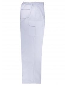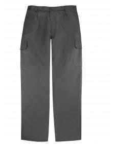 Pantalón multibolsillos acolchado con pinzas y goma en la cintura, varios bolsillos cuatro de ellos con cierre de velcro; pespunte trasero de seguridad.
