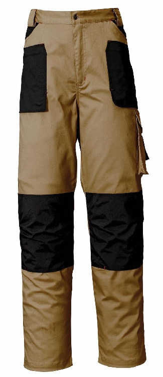 Pantalón stretch multibolsillos bicolor en gris/negro o beige/negro con fundas para colocar rodilleras.