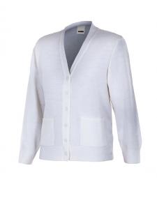 Chaqueta de punto fino de mujer de cuello de pico, con cierre de botones y tratamiento antipilling.