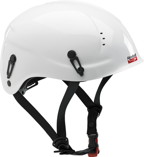 Casco para trabajo en altura con casquete en ABS y concha interna en poliestireno para absorber impactos. Talla única regulable por