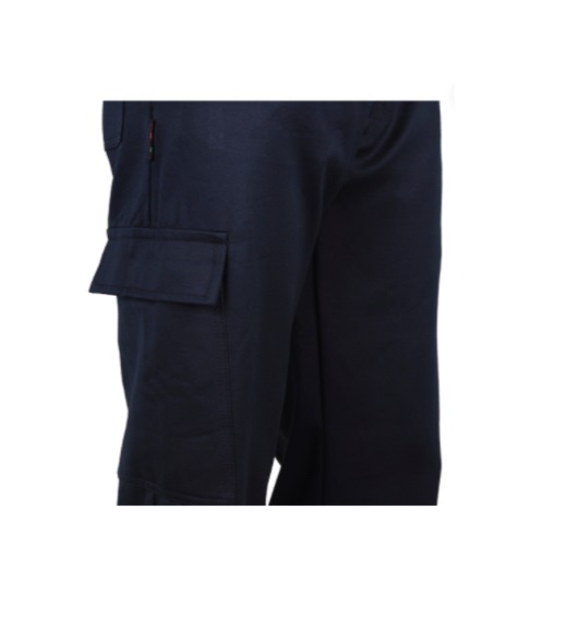 Pantalón largo, 3 bolsillos: 2 en cadera, 2 en las piernas y uno en el trasero, cintura elástica, cierre de cremallera y botón, rodilleras preformadas.